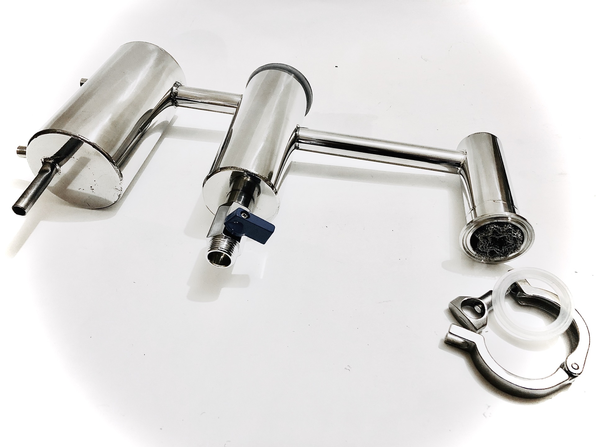 Готовый для перегонки аппарат под кламп 1.5дюйма(38мм) высокой производительности до 3л/ч с разборным сухопарником и вертикальным охладителем.
