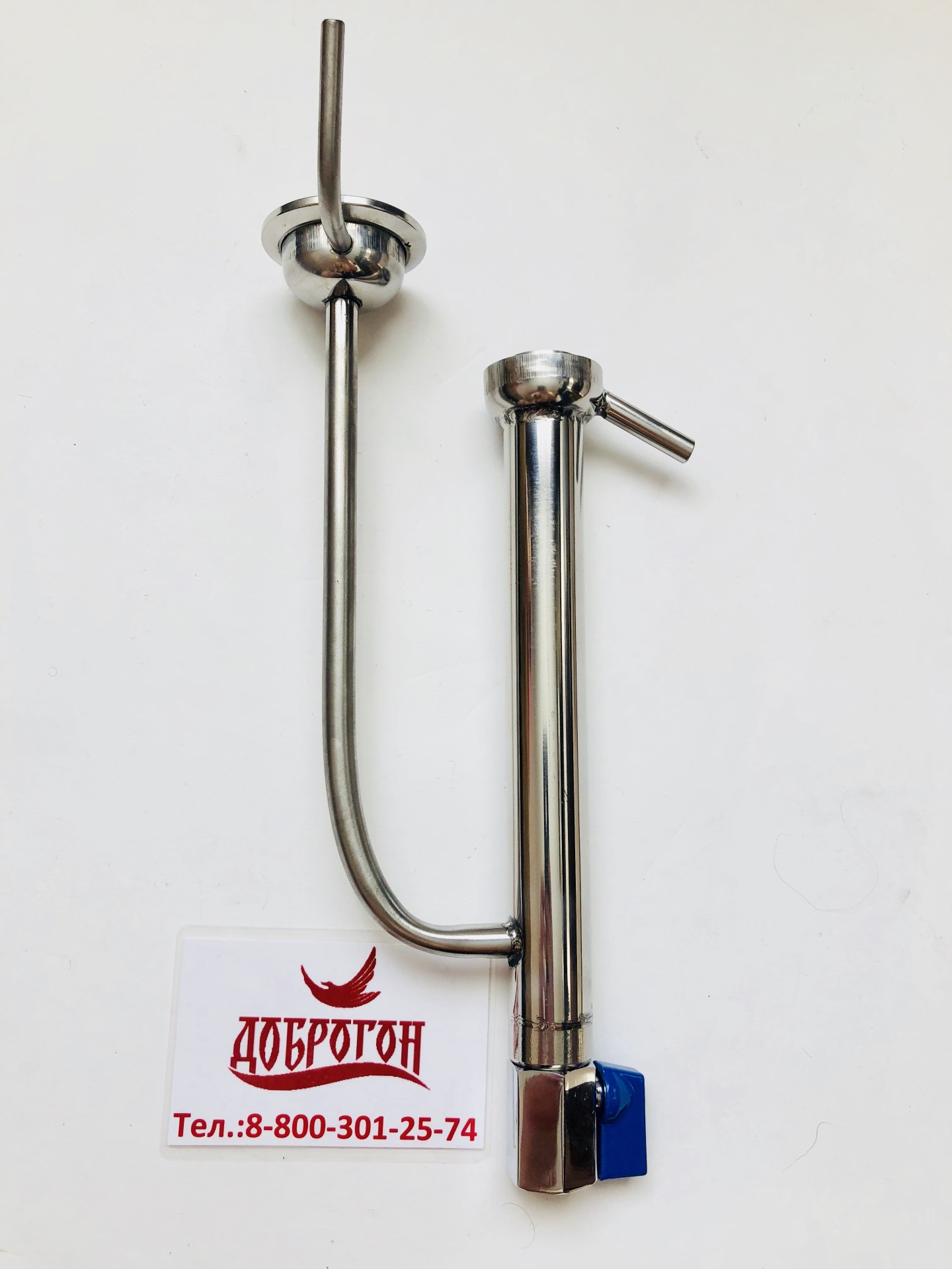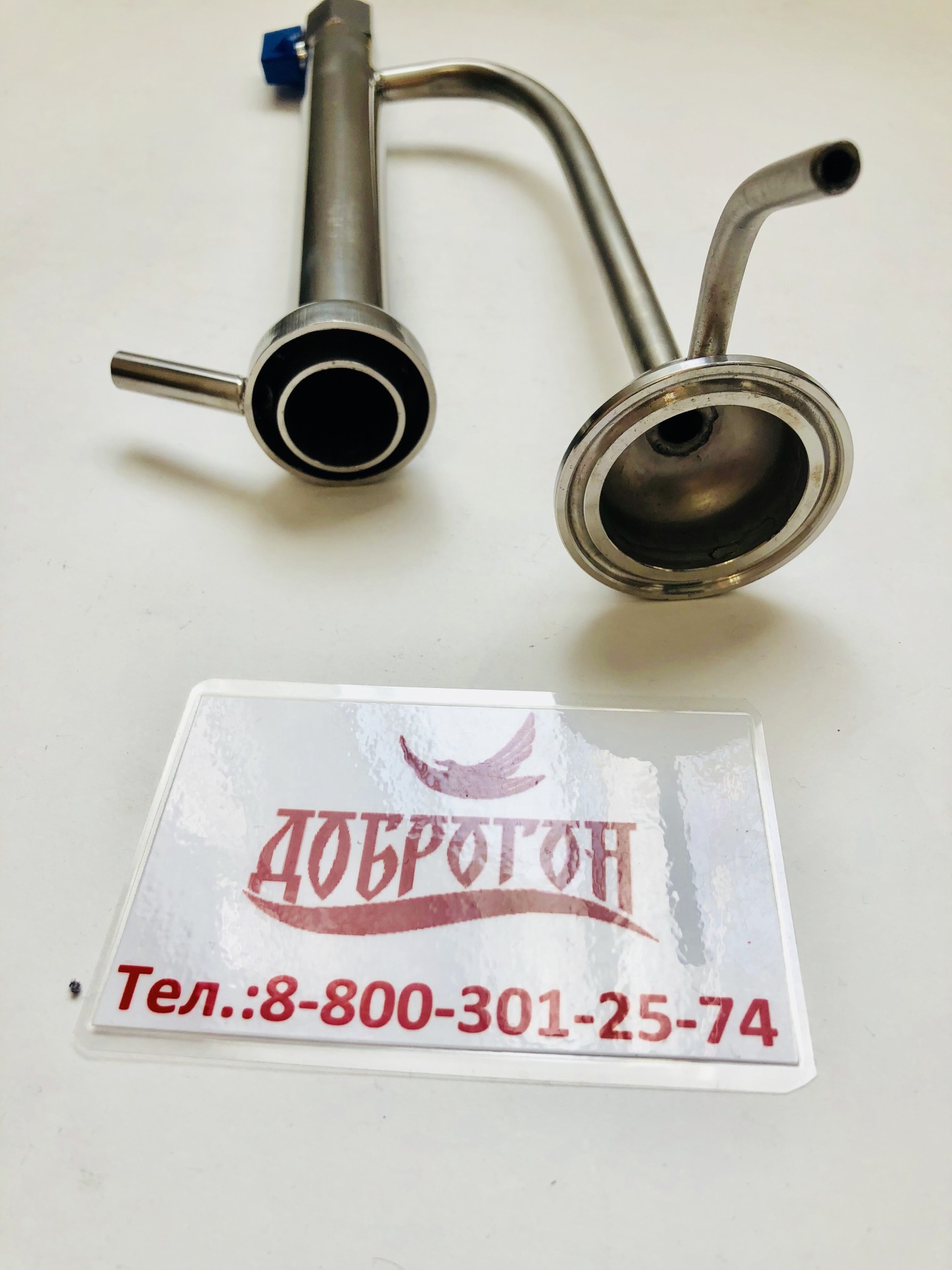 Имеет встроенную трубку ТСА (трубка связи с атмосферой). ТСА необходима для ровного слива продукта из дистиллятора, предотвращения захлебывания выходного носика и пульсирующего потока струи.