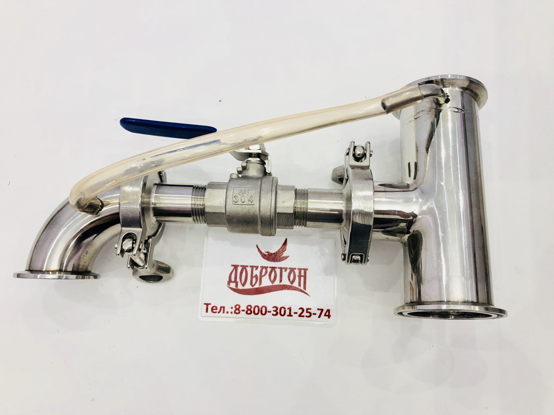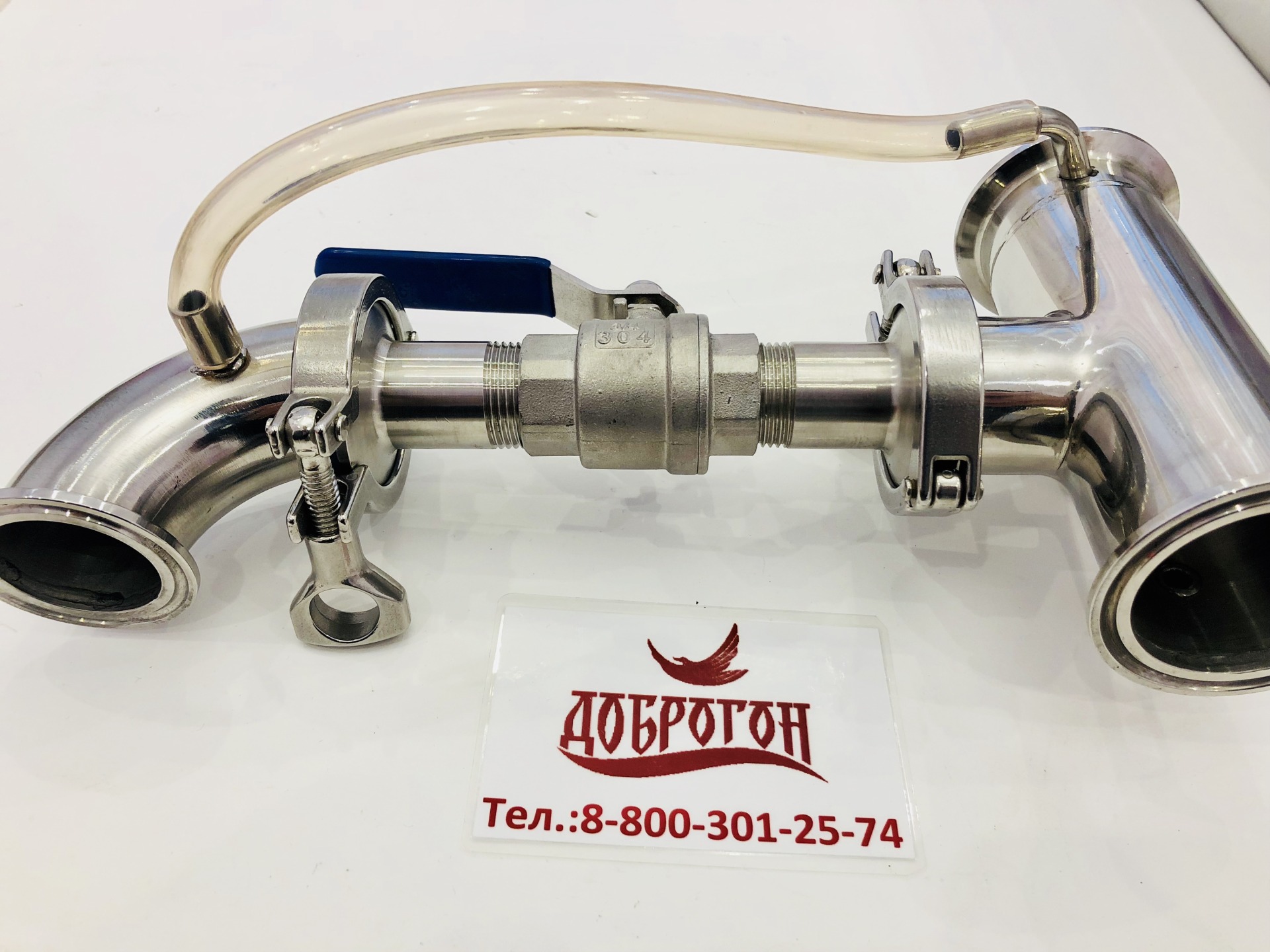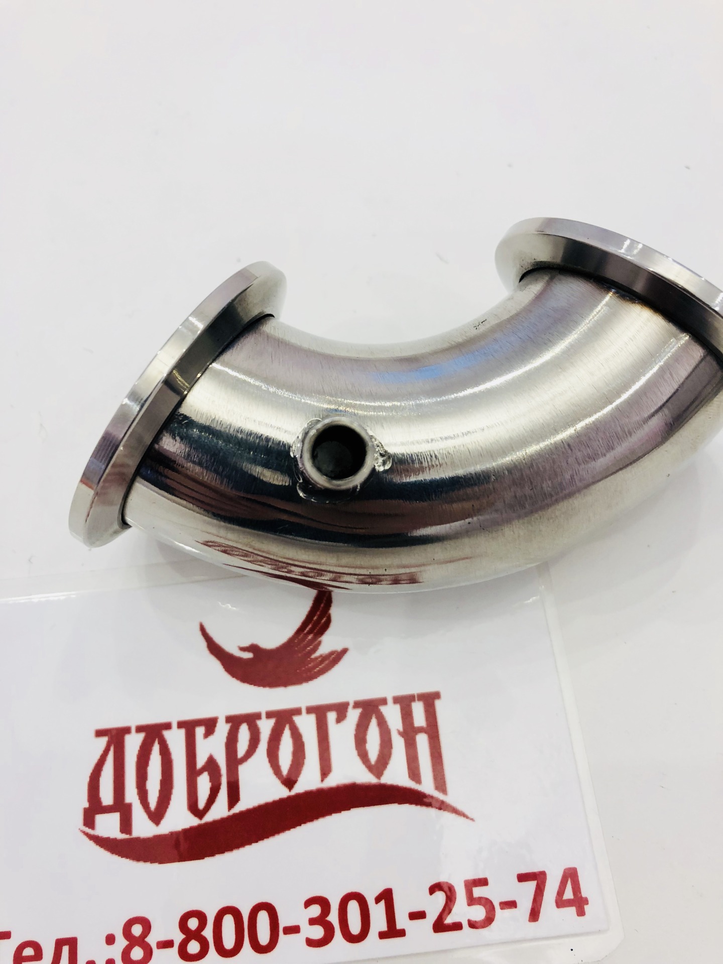 Угол 90гр. со сквозной гильзой 8мм - применяется в узлах отбора по пару и жидкости для соединения узла отбора по жидкости с доохладителем, с обеих сторон соединение под кламп 1.5" (ф38мм).
