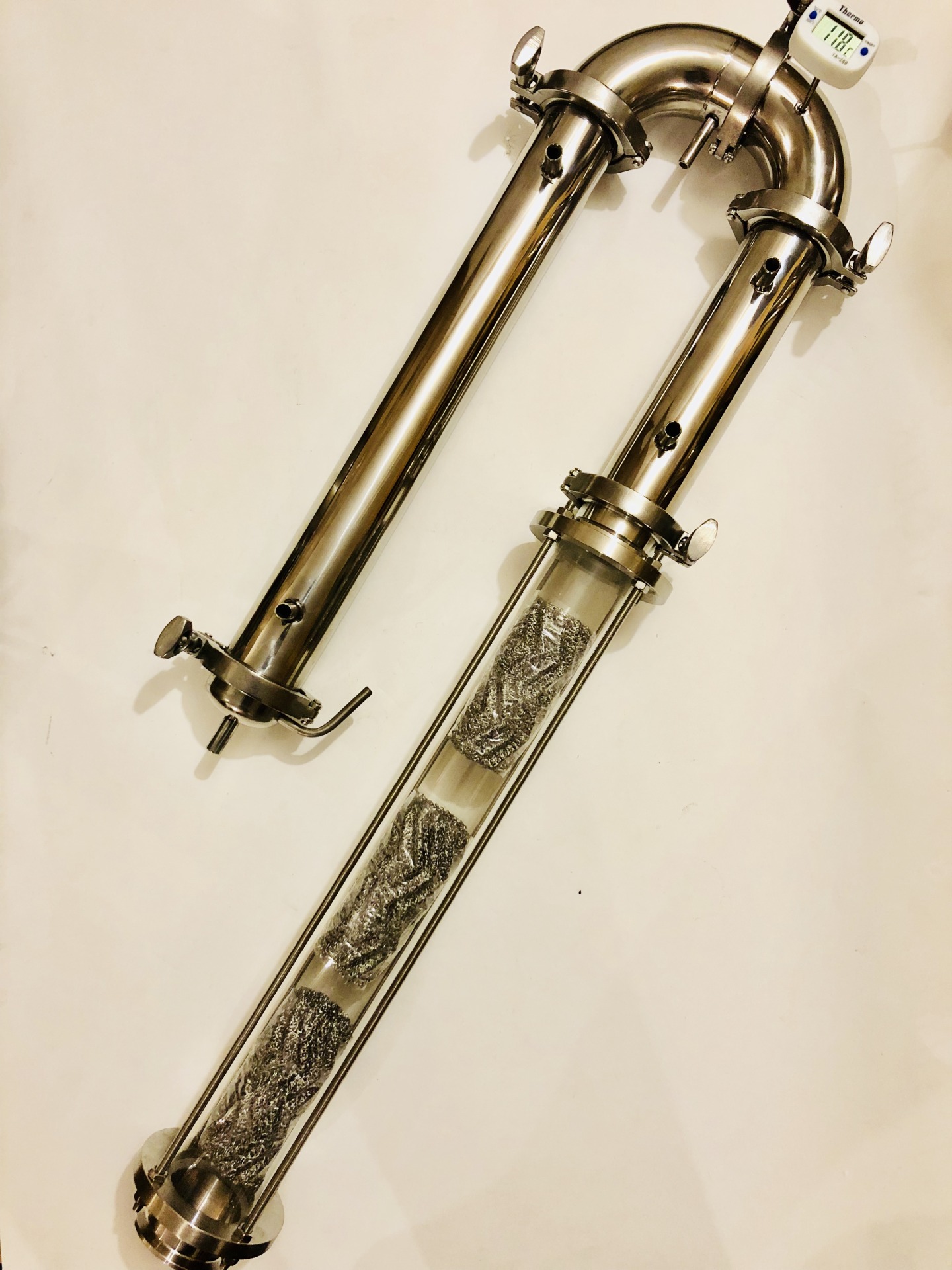 Стекляннаяцарга (высотой 50 см) превращает ваш аппарат любой модели "Доброгон", так же подходит к любым аппаратам с выходом под кламп 2 ДЮЙМА. Вы получаете полноценную ректификационную колонну с выходом продукта до 90 градусов.