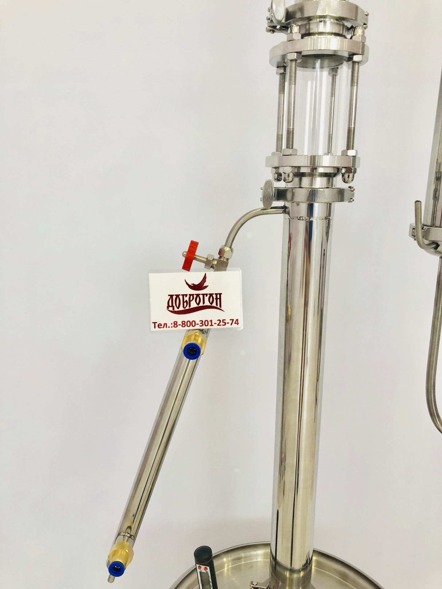 Диоптр - удобное приспособление со смотровым окном для визуального контроля приготовления дистиллята. Необходимо для понимания того, как интенсивно кипит брага и как испаряются пары спирта. Имеет кламповое соединение 2 дюйма, для модернизации аппаратов "Доброгон". Устанавливается диоптр сразу же после фланца перегонного куба.
