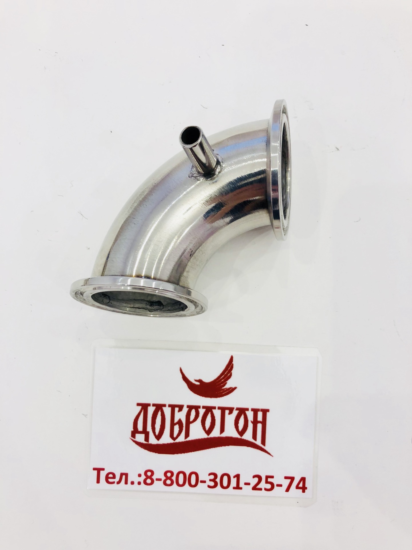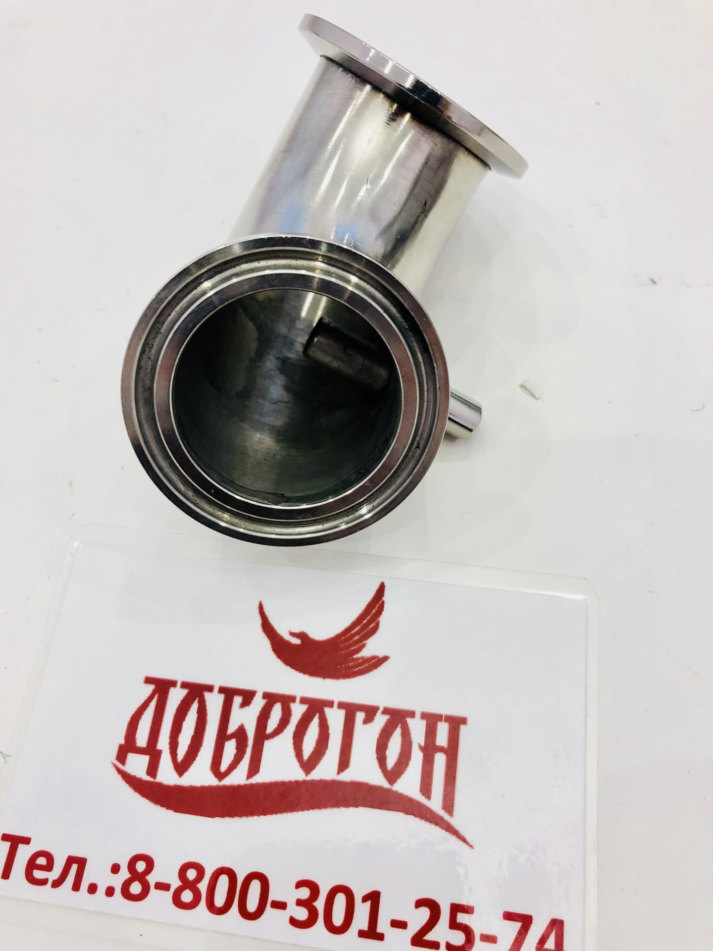 Угол 90гр. со сквозной гильзой 8мм - применяется в узлах отбора по пару и жидкости для соединения узла отбора по жидкости с доохладителем, с обеих сторон соединение под кламп 3"(76мм).