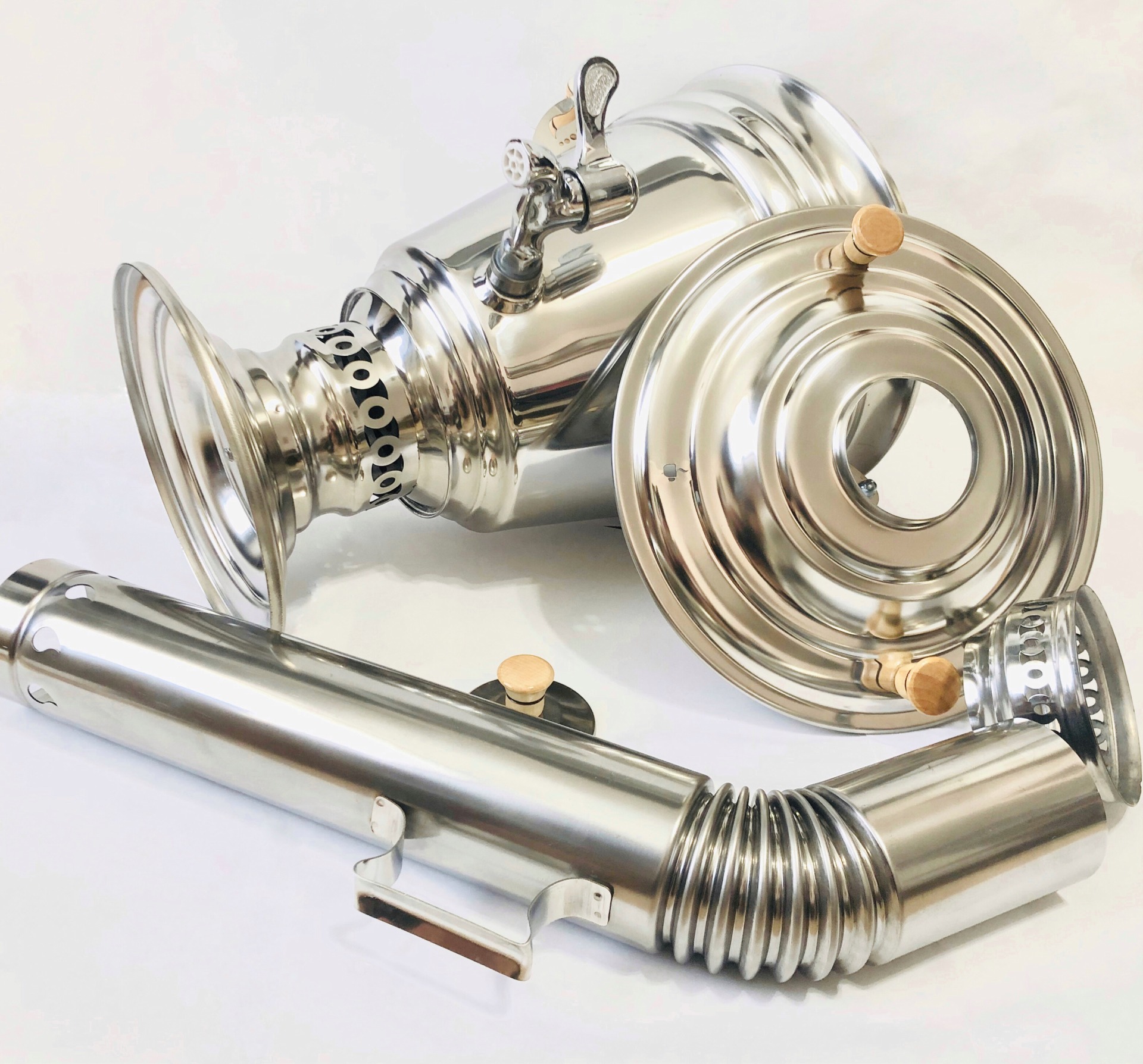 Представляем вашему вниманию настоящий традиционный Уральский самовар от Торговой марки Доброгон изготовленный по типу " Рюмка" - в котором вода нагревается внутренней топкой, представляющей собой высокую трубку, наполняемую древесными углями, щепками, шишками и тд.