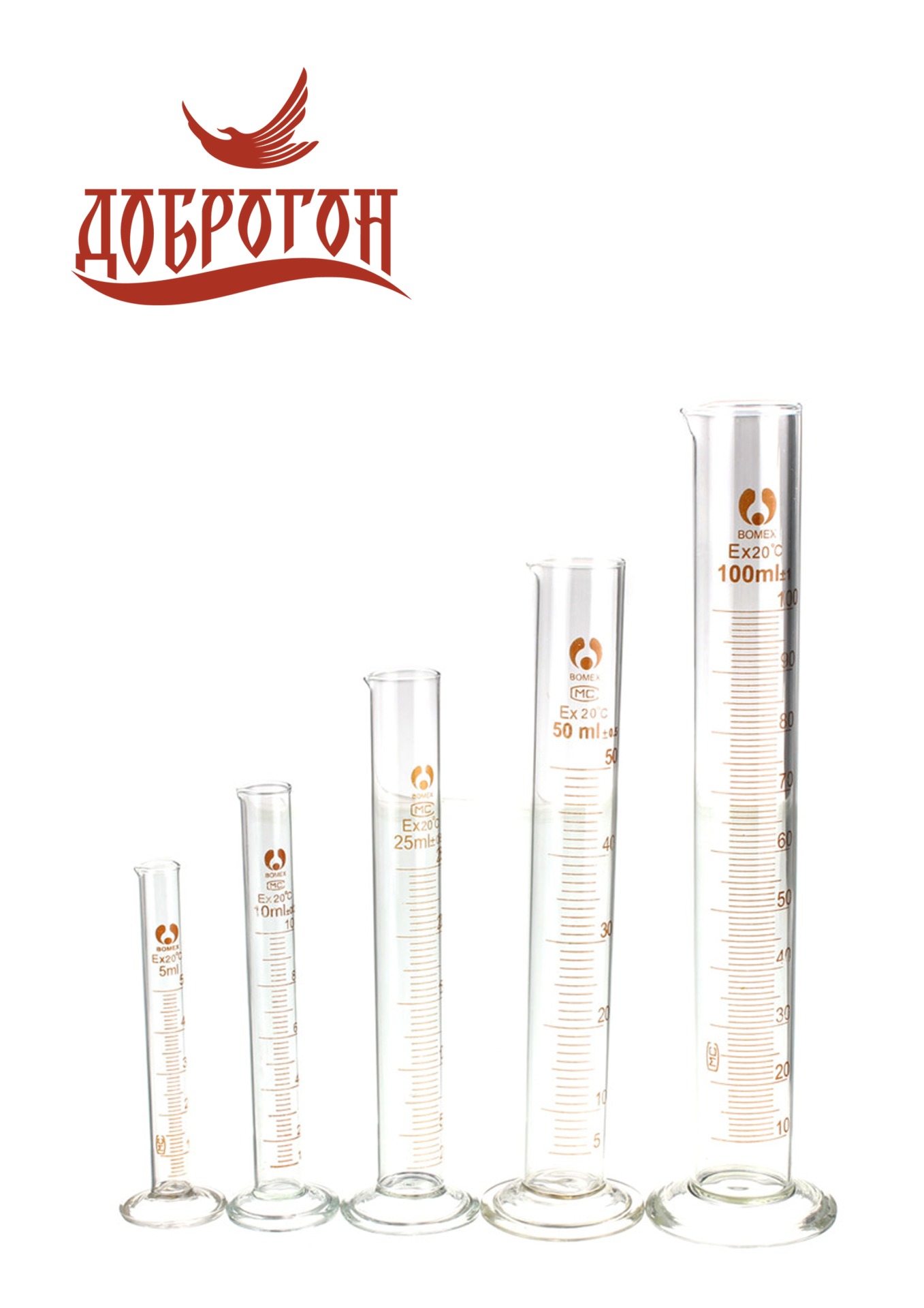 Мерный цилиндр - применяются в качестве вспомогательных приспособлений при самогоноварении и изготовлении спирта. Цена 1 деления - 1 мл.