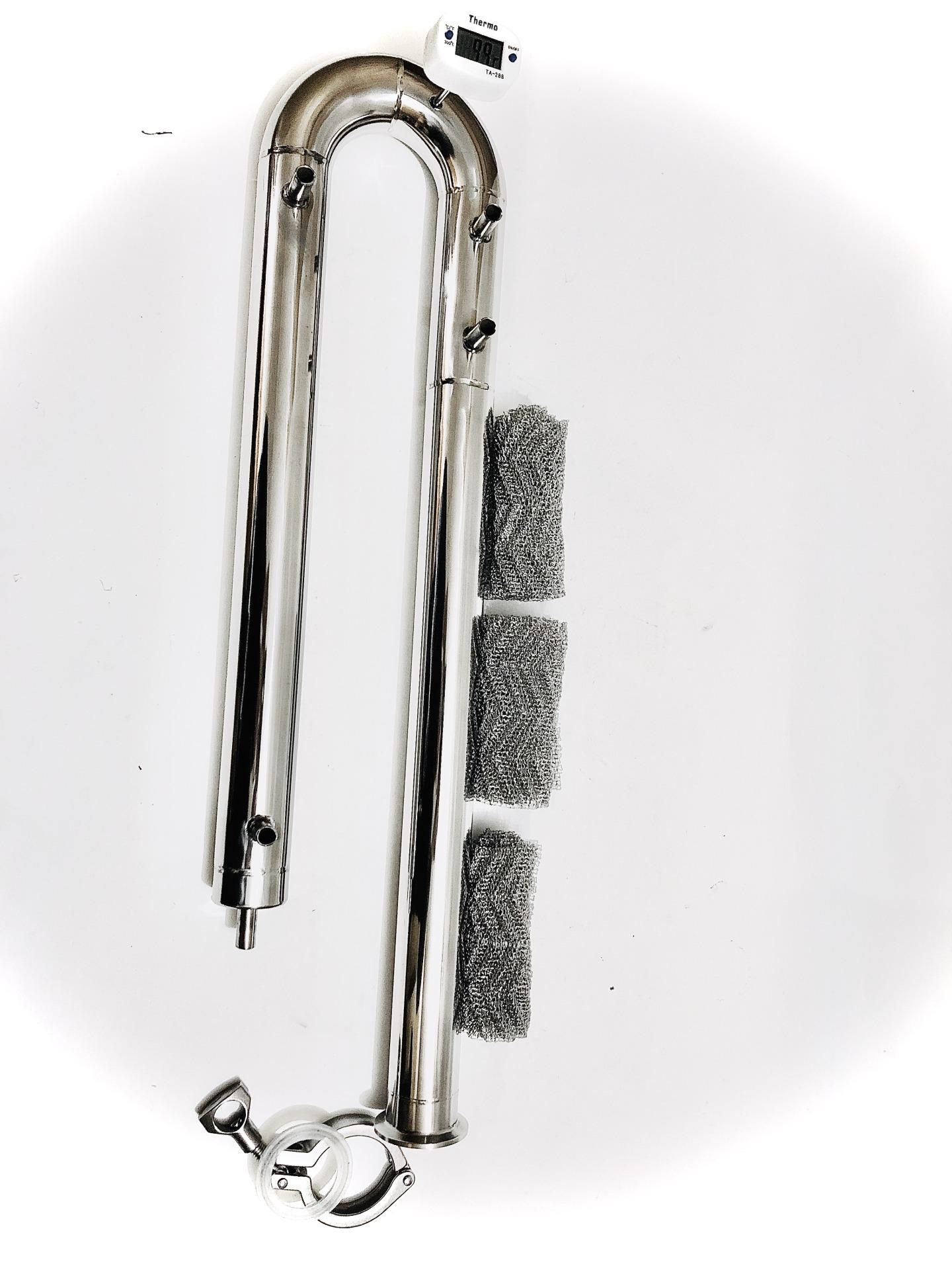 · Съемная колонна имеет высоту 57см, заполнена специальной нержавеющей сеткой (регулярной проволочной насадкой Панченкова (РПН Панченкова - 3шт из нержавейки)), что позволяет увеличить степень очистки и получить более чистый продукт, фильтруя пары спирта и отсекая сивушные масла.
